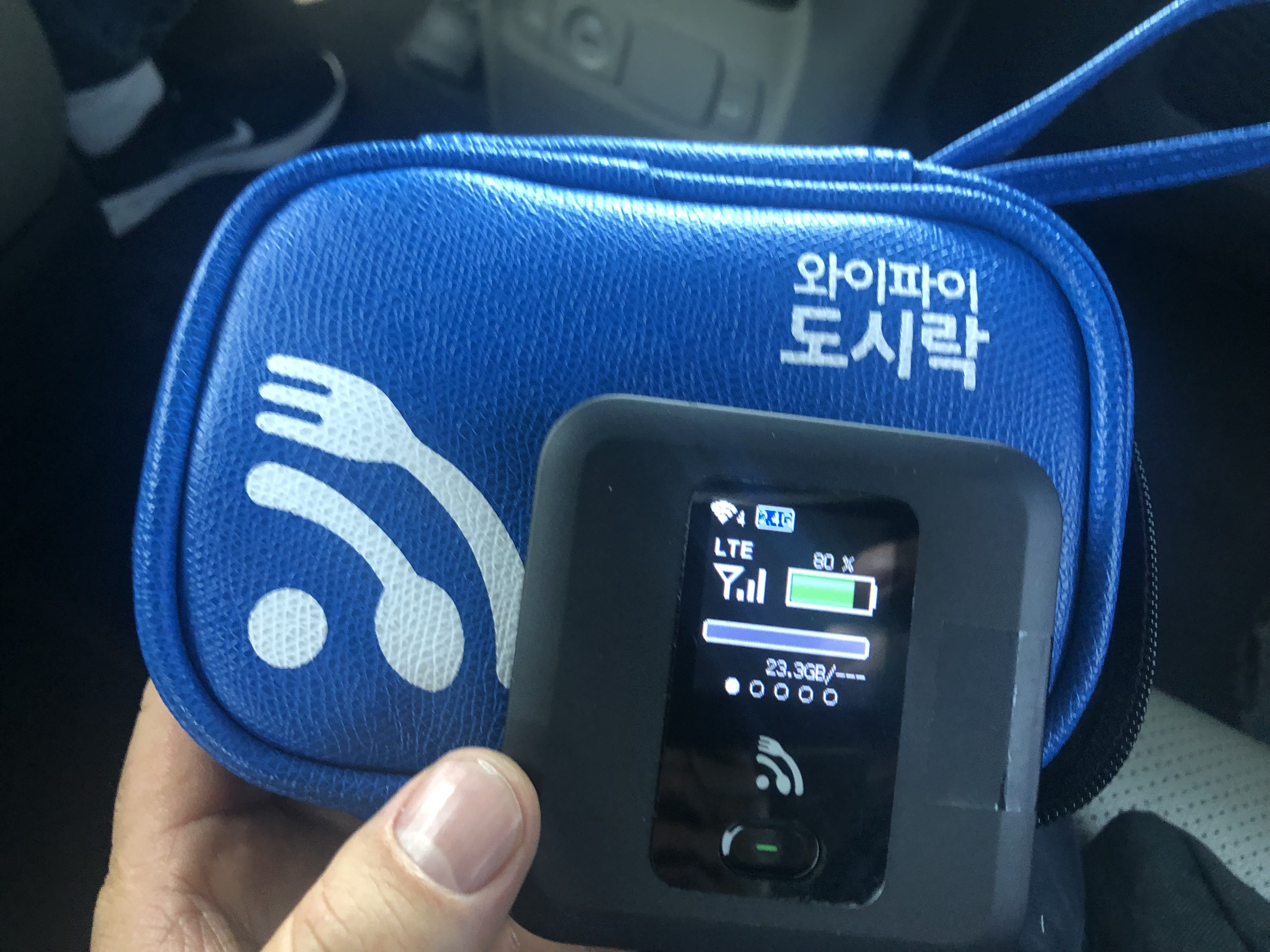 예약한 와이파이 도시락은 하루 대여료가 3,900원으로, 하루에 2GB 까지는 LTE 속도로 지원하고 초과 시에는 저속으로 무제한 사용이 가능하다. 데이터 사용량에 따라 1일 대여료가 달라지는데 현지 숙소에서는 무료 와이파이 사용이 가능하고, 주로 차량 이동 시에만 카톡으로 사진과 텍스트를 주고 받는 걸 고려해 다섯 명이 하루 2GB 고속 데이터 사용이면 될 거라고 생각한 거다.